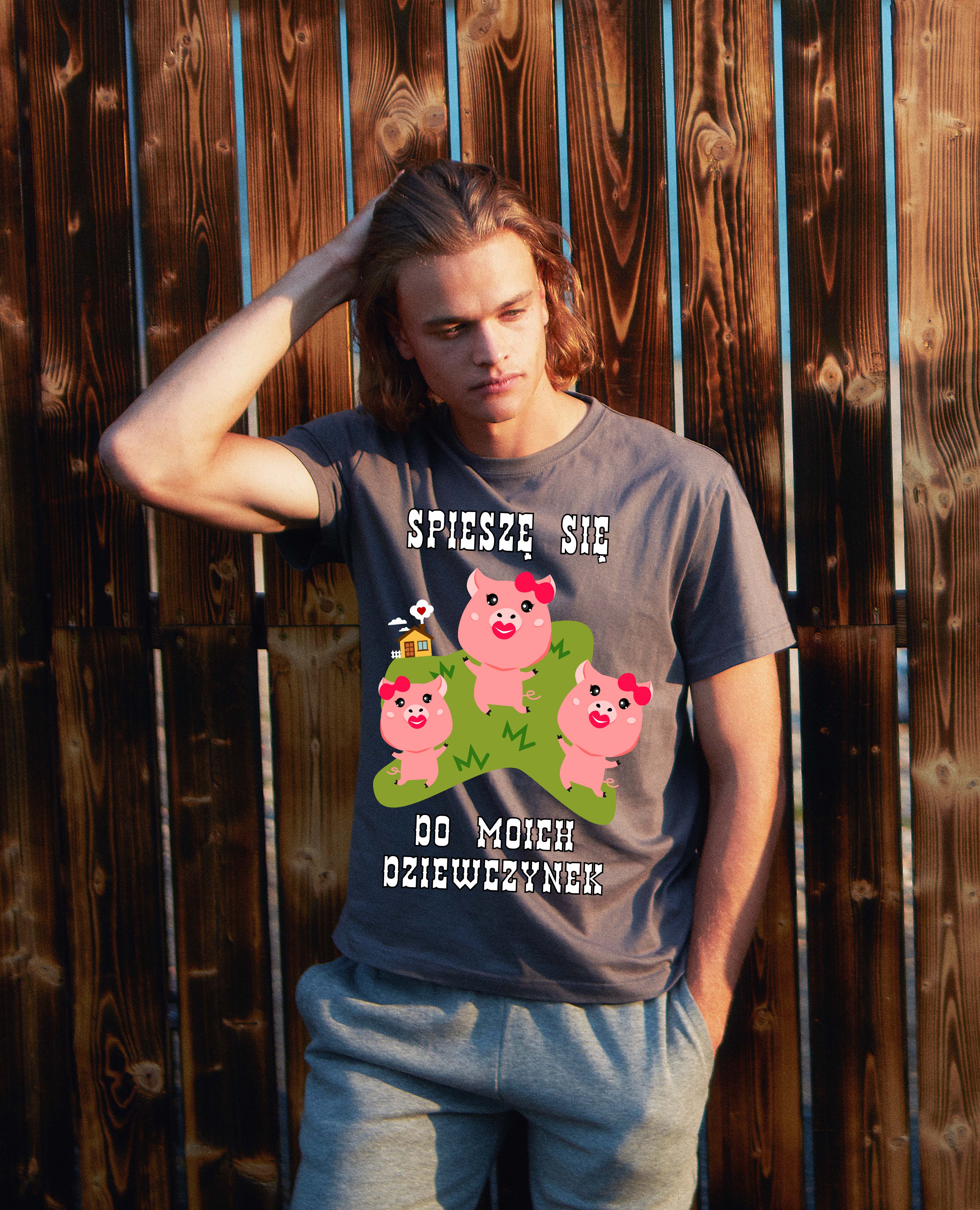 Koszulka dla rolnika - Spieszę się do moich dziewczynek - świnki