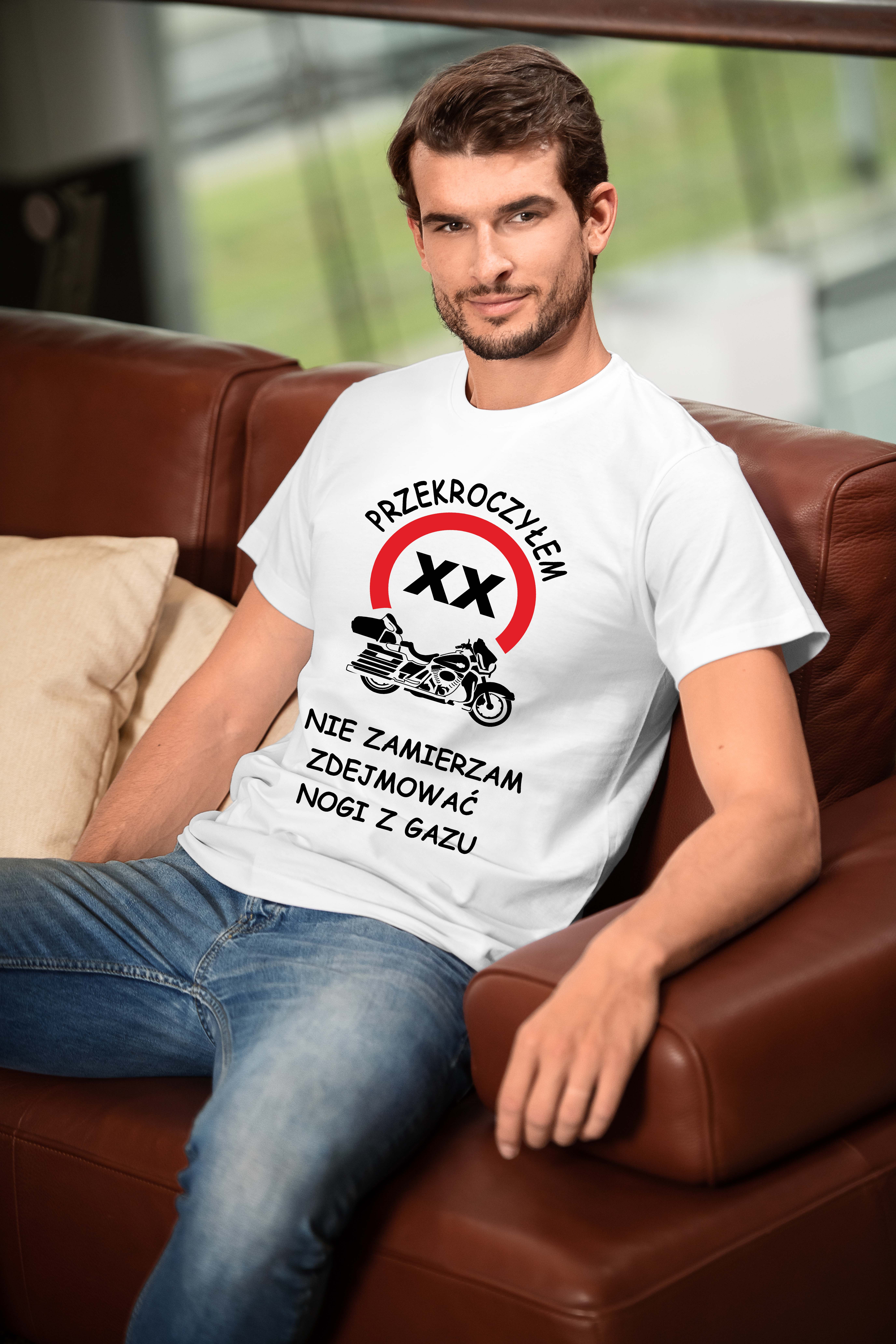 Koszulka urodzinowa Przekroczyłem [liczba lat] i nie zamierzam zdejmować nogi z gazu