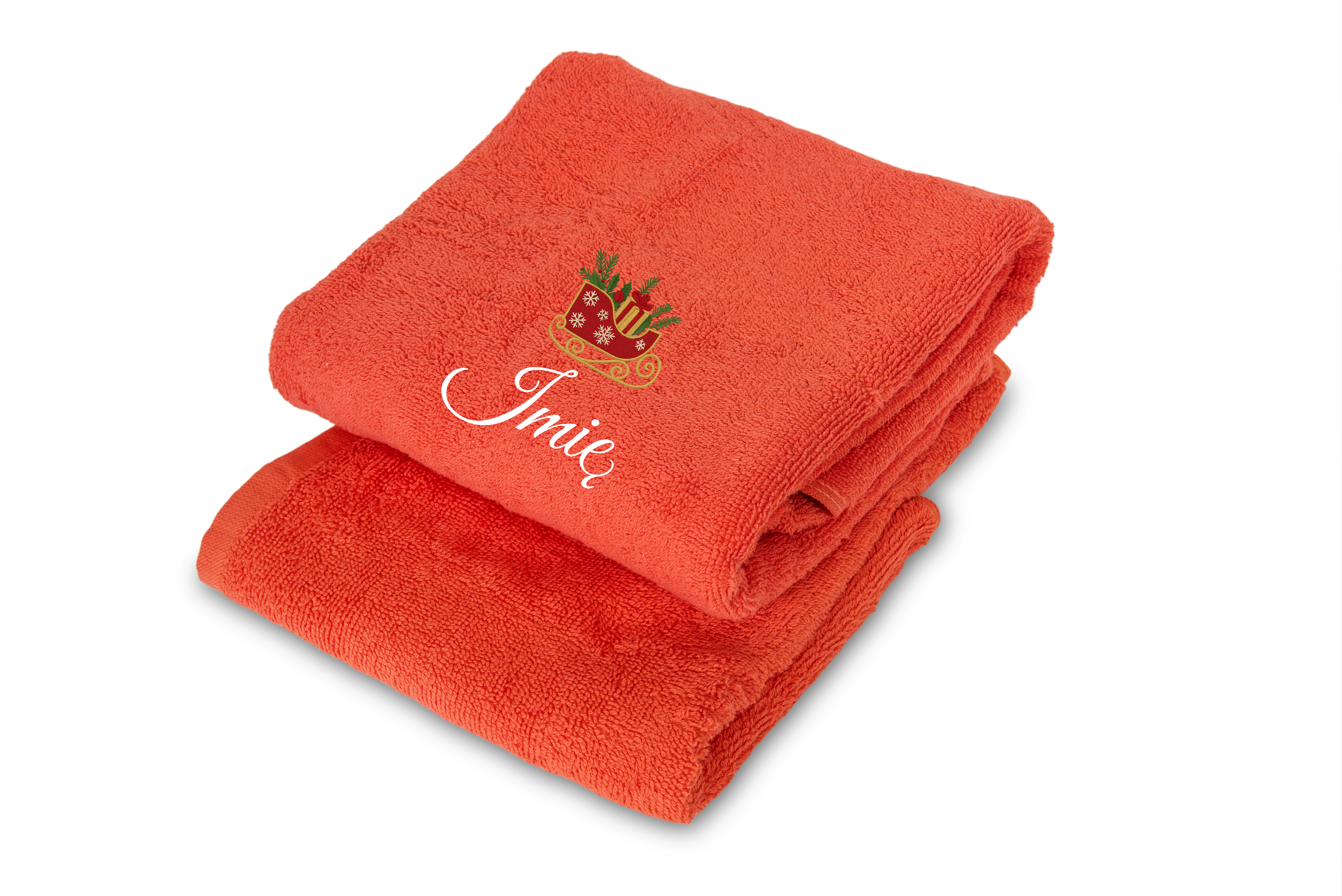 Ręcznik kąpielowy w rozmiarach 70cm x140cm z wyhaftowanym Twoim imieniem i motywem świątecznym.